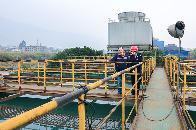 四川德胜集团钒钛有限公司职工向税务干部讲解污水处理、水资源循环利用工艺流程。四川省税务局供图