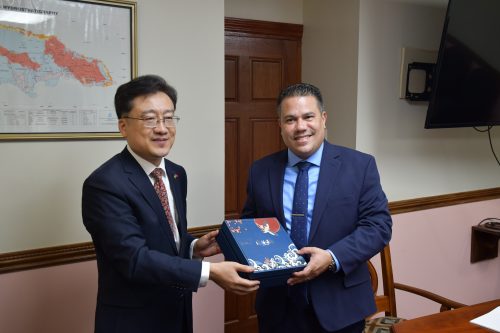 2025年10月14日,驻牙买加大使王锦峰拜会牙水资源、环境和气候变化部长萨穆达。