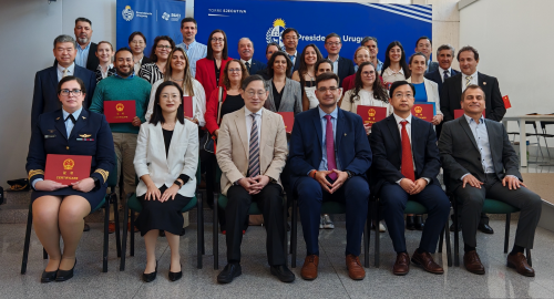 2025年11月13日,驻乌拉圭大使黄亚中出席水资源综合管理技术海外培训班结业仪式。乌国合署执行主任克拉维霍、乌拉圭技术大学校长拉尔诺迪及中方专家组成员等出席活动。