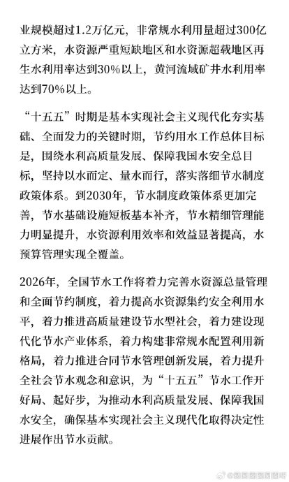 #全球已进入水资源破产时代#全球“水破产”时代已来临:水资源严重透支,表现为地下水枯竭、河流过度分配、污染加剧,叠加气候变暖,导致多地水源系统濒临“破产”。水资源现状:不仅耗尽短期可再生的河流与土壤水,还在消耗含水层、冰川等长期储备;地表水和湿地大面积消失,地下水源快速见底,水质恶化加速可用水减少。必须减少用水需求、改造高耗水行业、严厉打击非法取水和污染,否则水资源崩溃将不可逆转。#上微博涨知识##热点科普##微博超有用视频大赛#